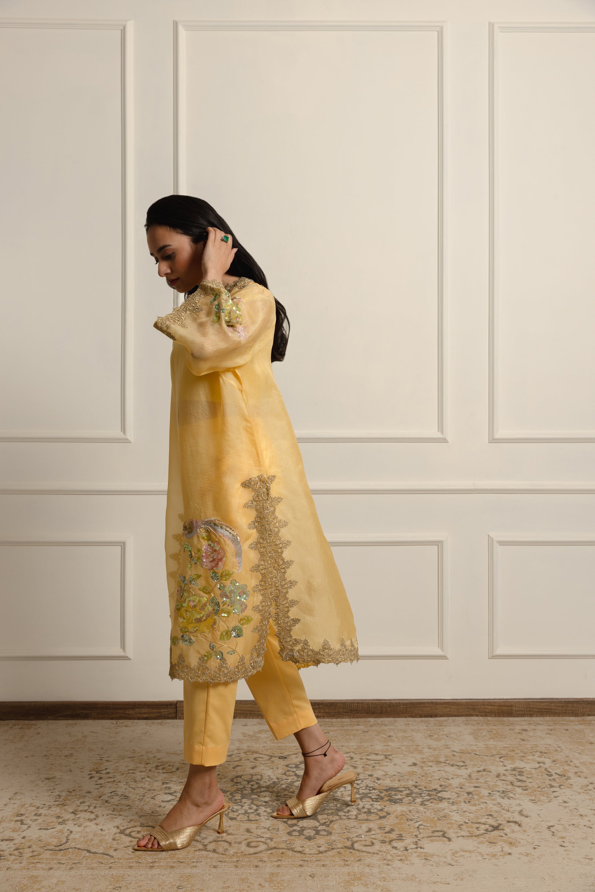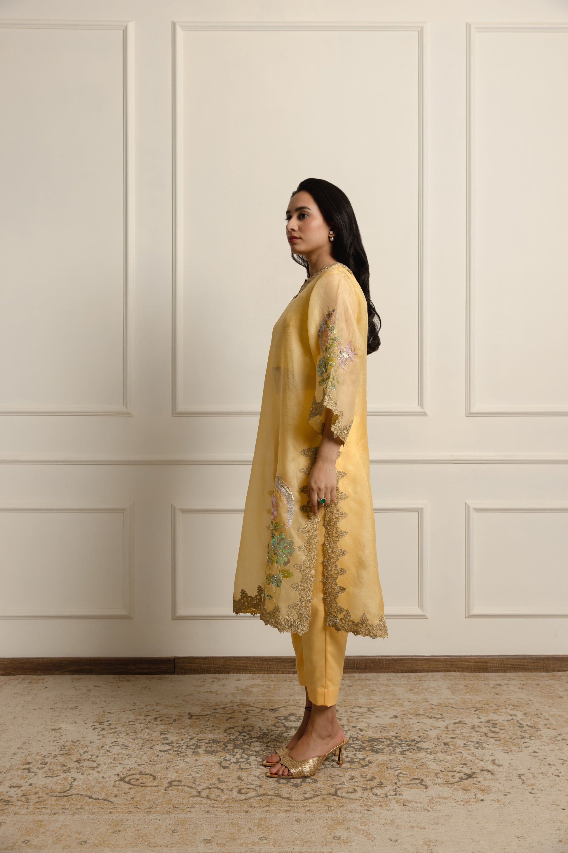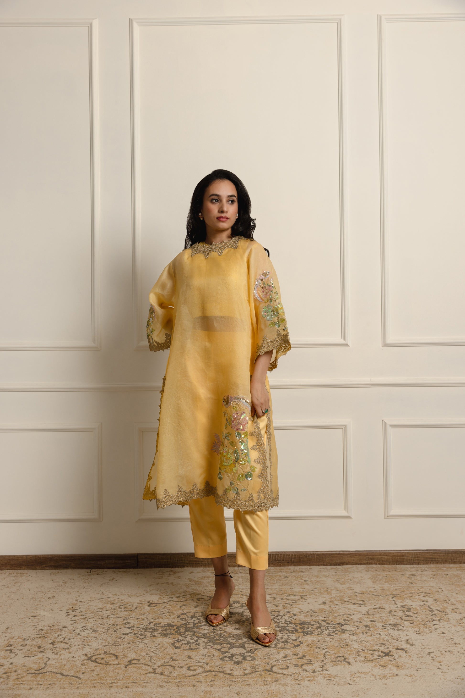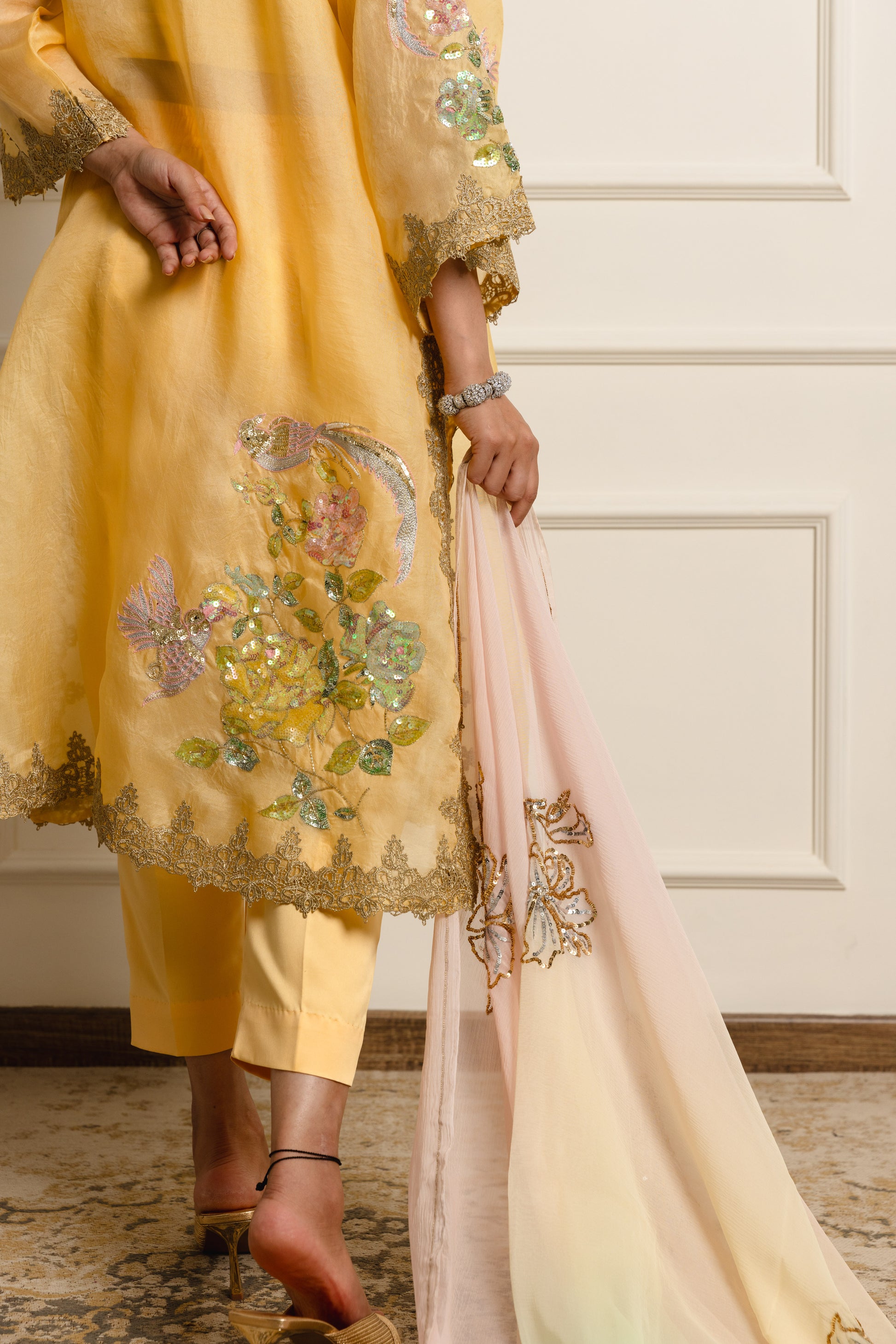 - Fabric - Kurta- Silk Organza, Pant- Silk Satin, Dupatta - Silk Chiffon