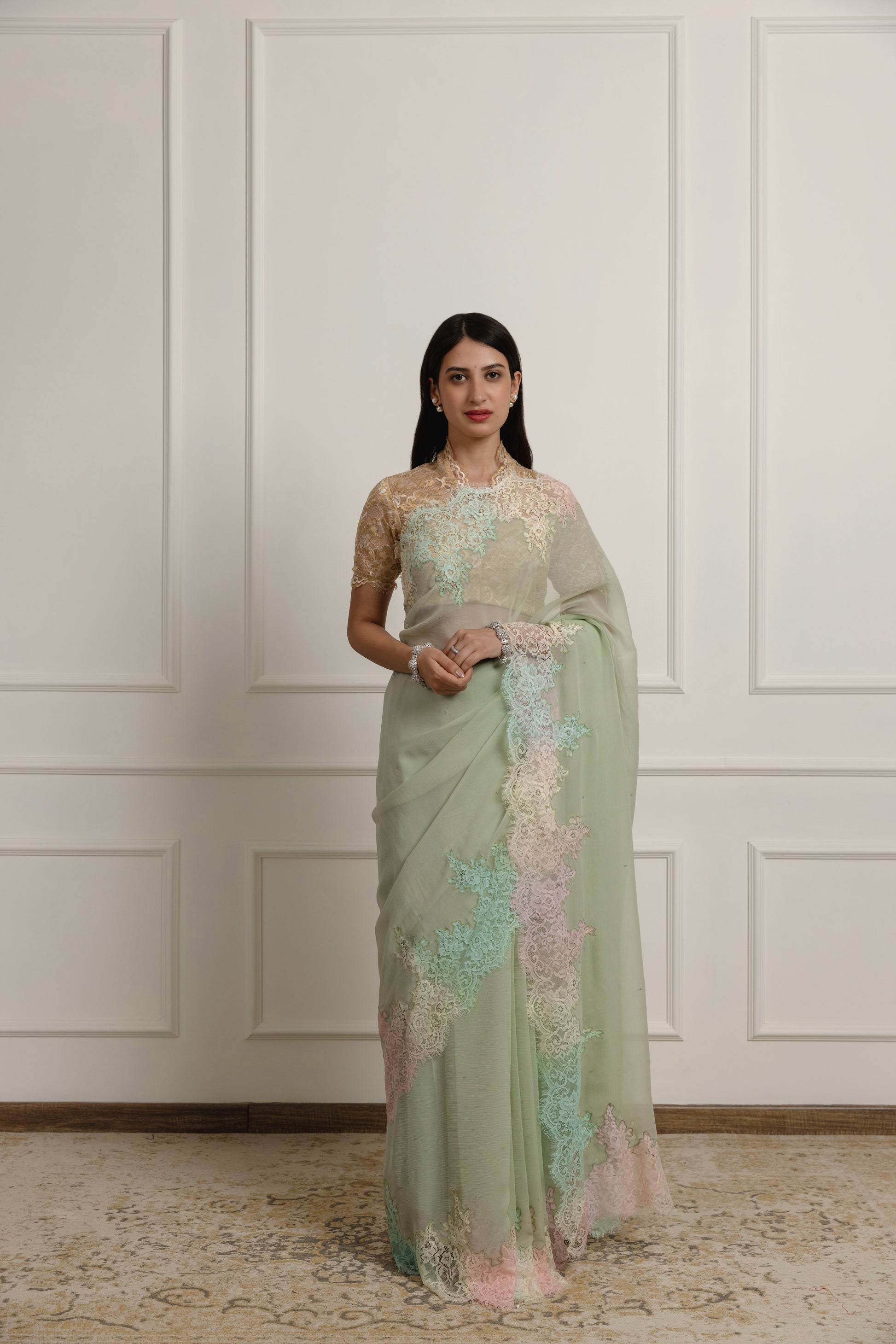 - Fabric - Saree - Silk Chiffon, Blouse - Chantilly lace