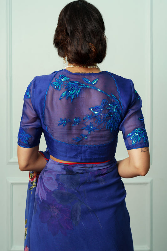 Cobalt Blue to wine shaded chiffon saree with sequin jaal all-over