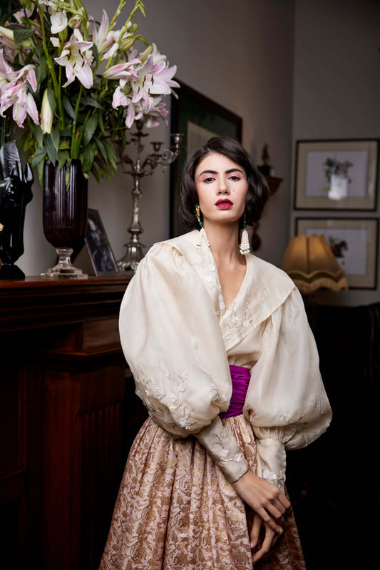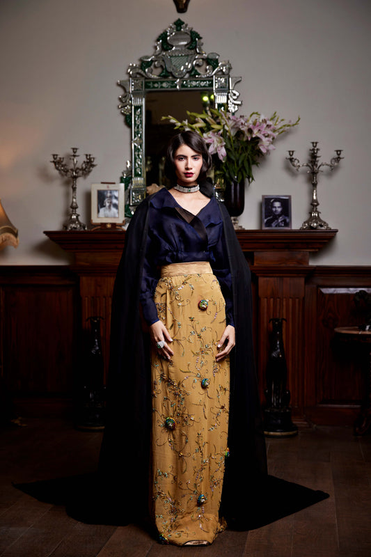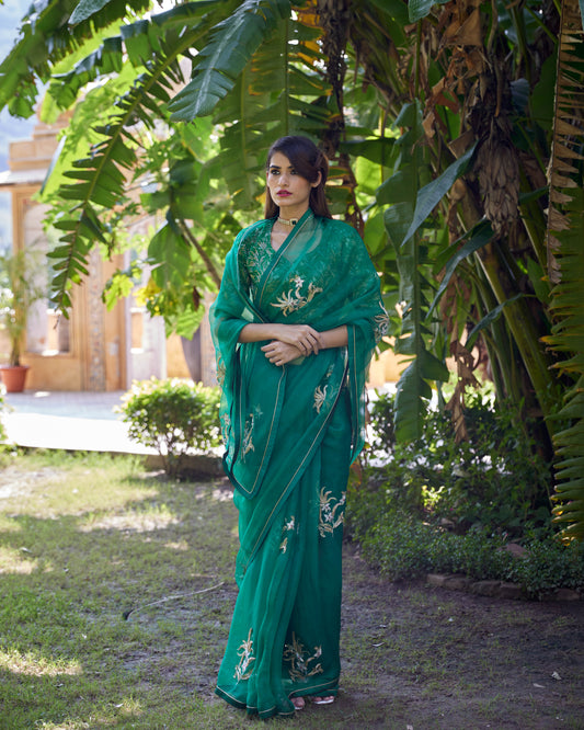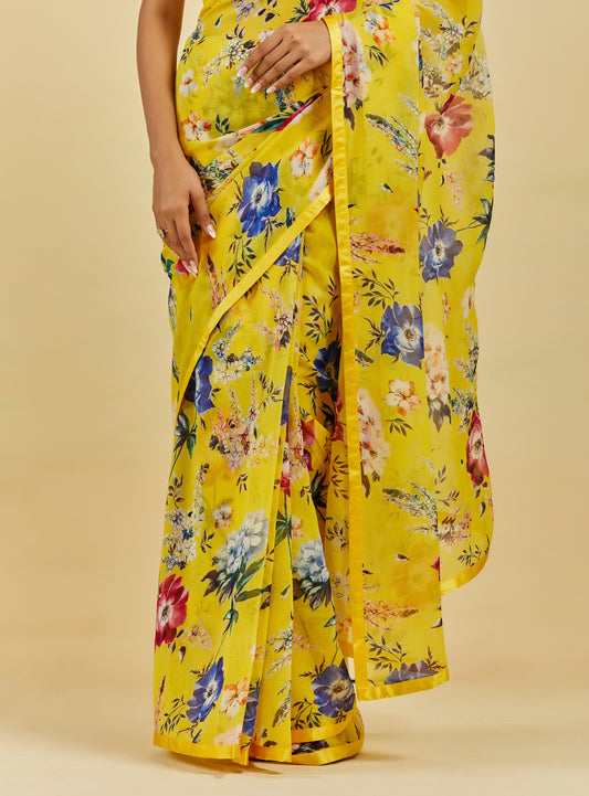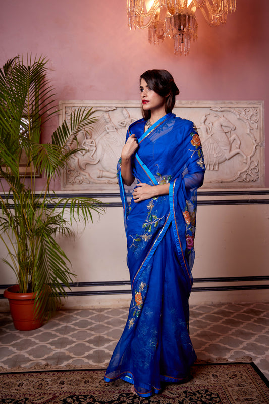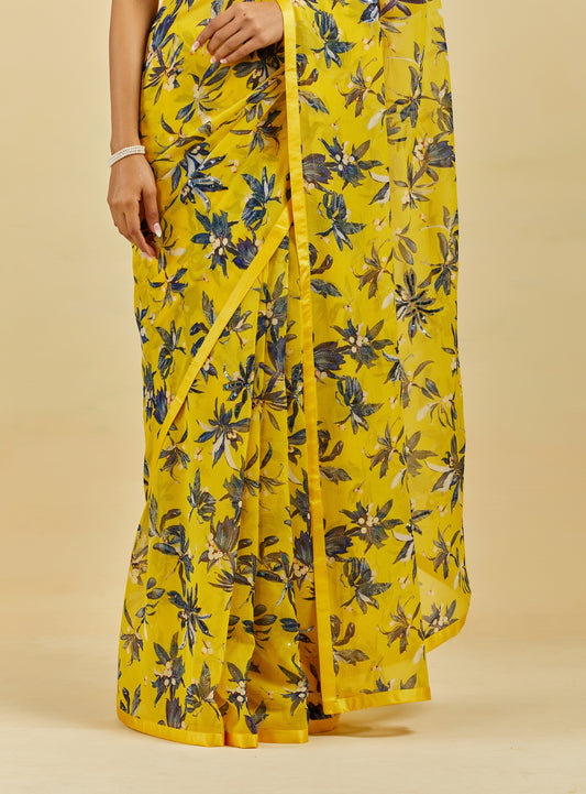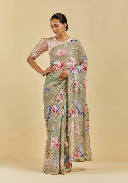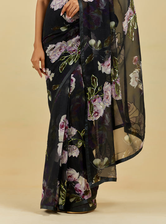 Céline Printed French Chiffon Saree with Hand Embroidered Motif