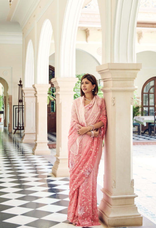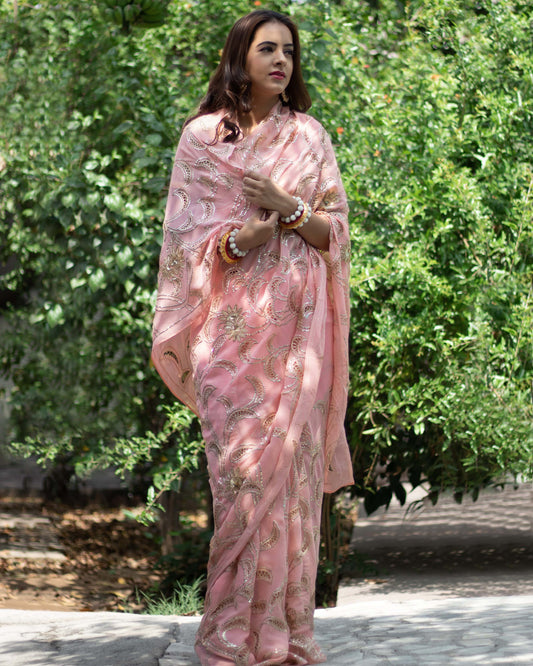 Blush Pink Ombré Kavita Silk Georgette Saree