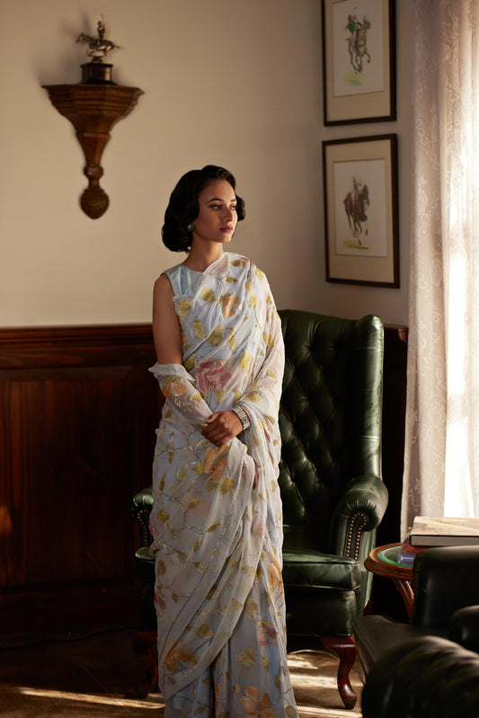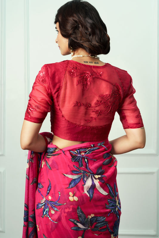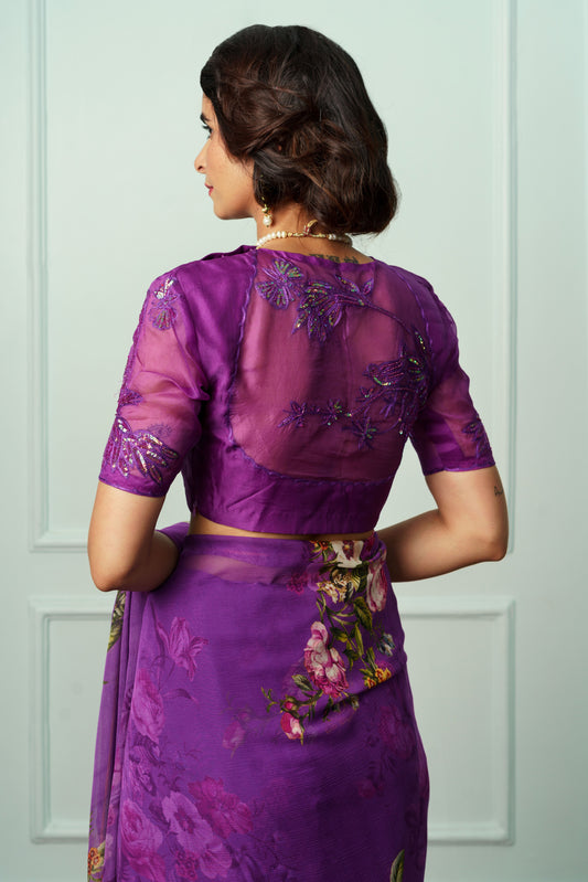 Peach to aubergine shaded chiffon with rosette sequin jaal