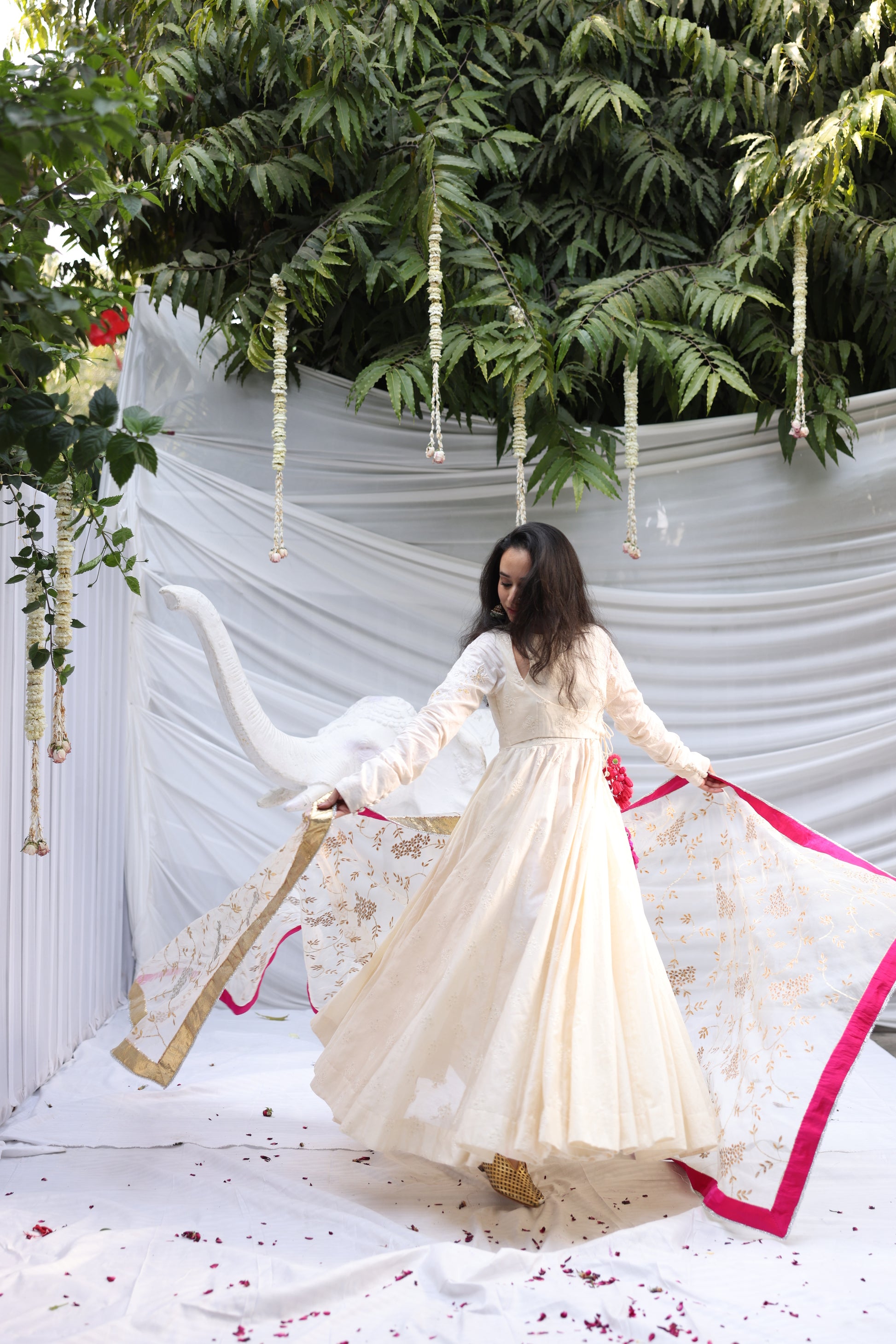Zarina Angrakha in fine Chanderi cotton, detailed with our signature bird motif on the sleeves.